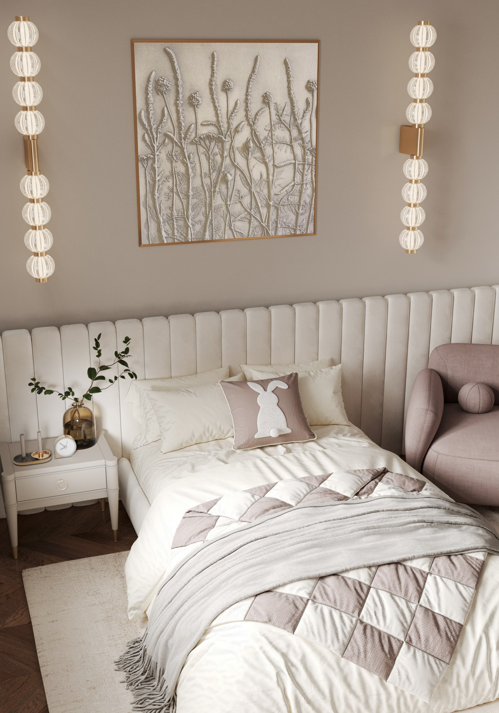 Вид спальни с мягким изголовьем